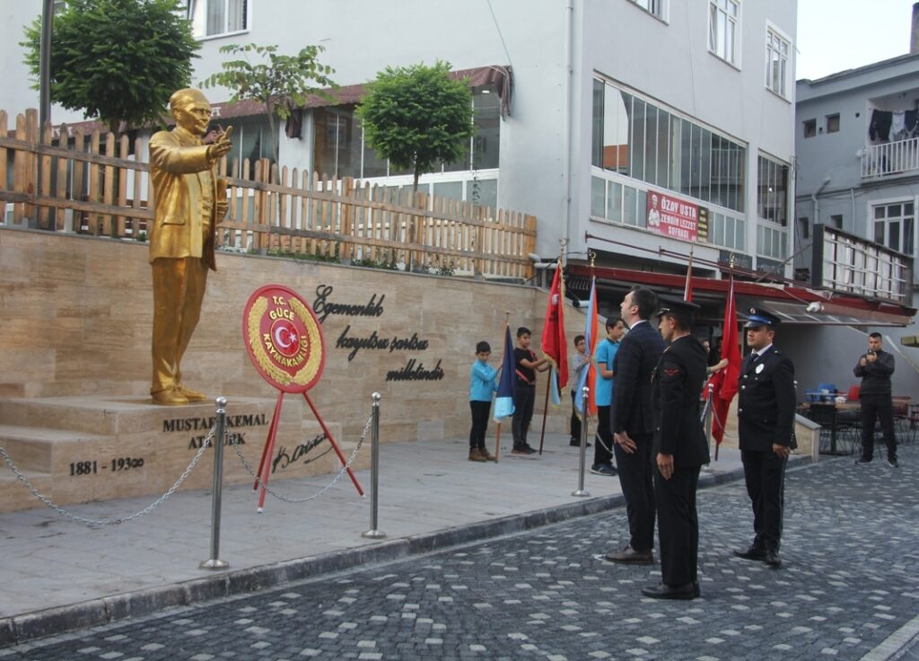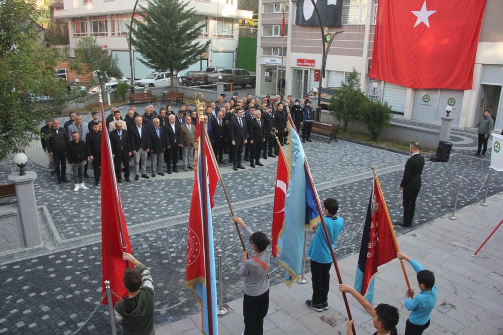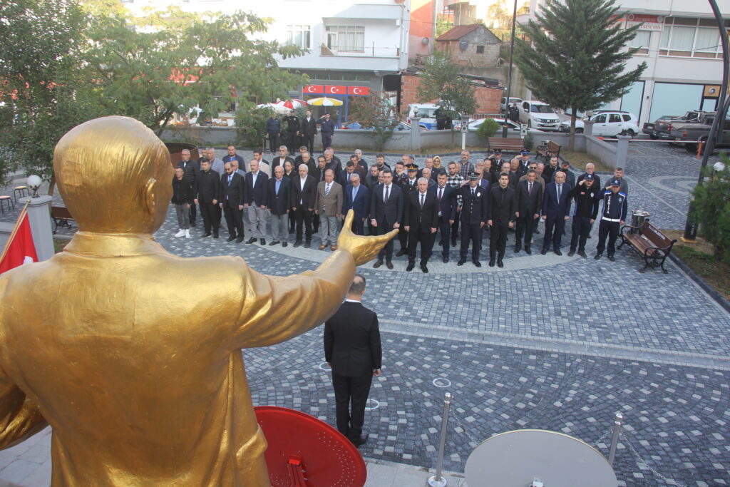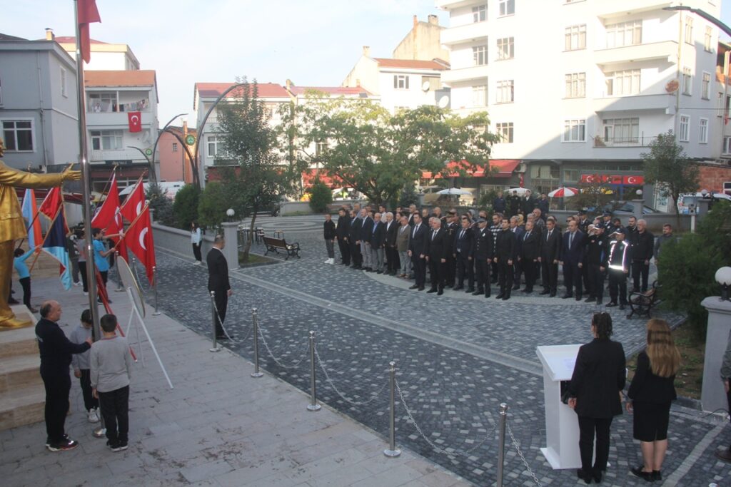 Çelenk sunma törenine İlçe Kaymakamı Ali Can Uludağ, Belediye Başkanı Aytekin Boduroğlu, İlçe Jandarma Komutanı Enis Aksoy, Emniyet Amiri Birkan Erden, daire amirleri, siyasi parti temsilcileri, öğretmenler, öğrenciler ve vatandaşlar katıldı.