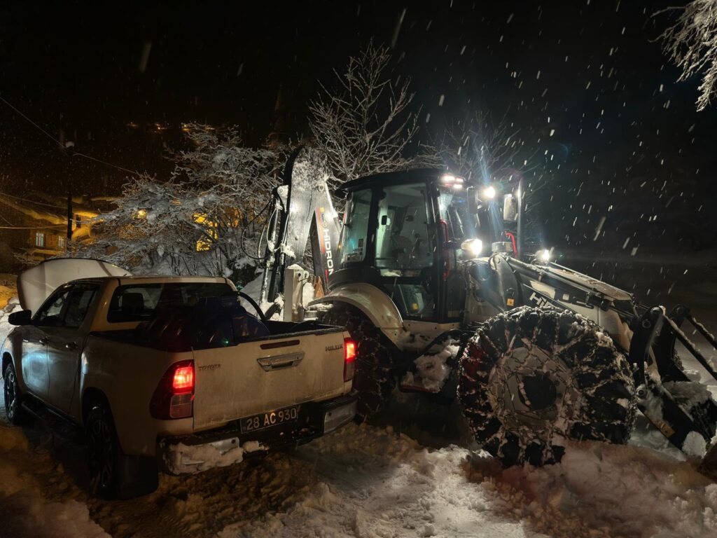 Güce İlçe Kaymakamı Ali Can Uludağ, kardan kapanan köy yollarında çalışma yapılırken iş makinelerine engel olan fındık ve ağaç dallarının kesilmesi için vatandaşlara çağrıda bulundu.